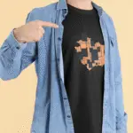 Product Description:Embrace modern art with our Abstract Geometry Tee. This unique design features a cluster of black squares and rectangles interconnected by thin lines, all set against a subtle splash of warm, earthy tones. Printed on a soft, light grey 100% cotton tee, this shirt offers both style and comfort. Perfect for adding a touch of abstract flair to your everyday wardrobe.