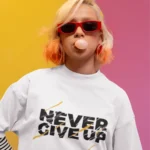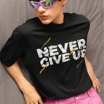 Product Description: Stay inspired and motivated with our “Never Give Up” tee. This stylish and comfortable t-shirt features a bold, ripped graphic design with vibrant orange accents. Perfect for everyday wear, workouts, or as a reminder to keep pushing forward. Made from high-quality, breathable material for all-day comfort.