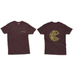 Product Description:Level up your style with our Pac-Man Gamer Evolution Tee! This maroon tee features a small Pac-Man logo on the front and a large Pac-Man shape on the back, cleverly formed from a collage of retro gaming consoles and controllers. This design is a nostalgic nod to the evolution of gaming, perfect for any Pac-Man fan or video game enthusiast. Made from 100% soft cotton for ultimate comfort, this tee is a must-have for your gaming wardrobe.
