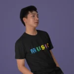 Product Description: Express your love for music with this vibrant and energetic t-shirt. Featuring the word “MUSIC” splashed across the front in bold, paint-splattered colors, this tee is perfect for concerts, festivals, or everyday wear. The design pops against the black background, making a statement wherever you go. Made from soft, comfortable cotton, this t-shirt is a must-have for any music lover.